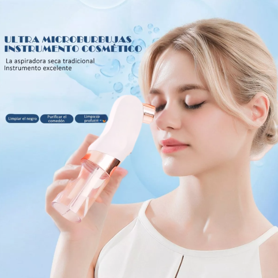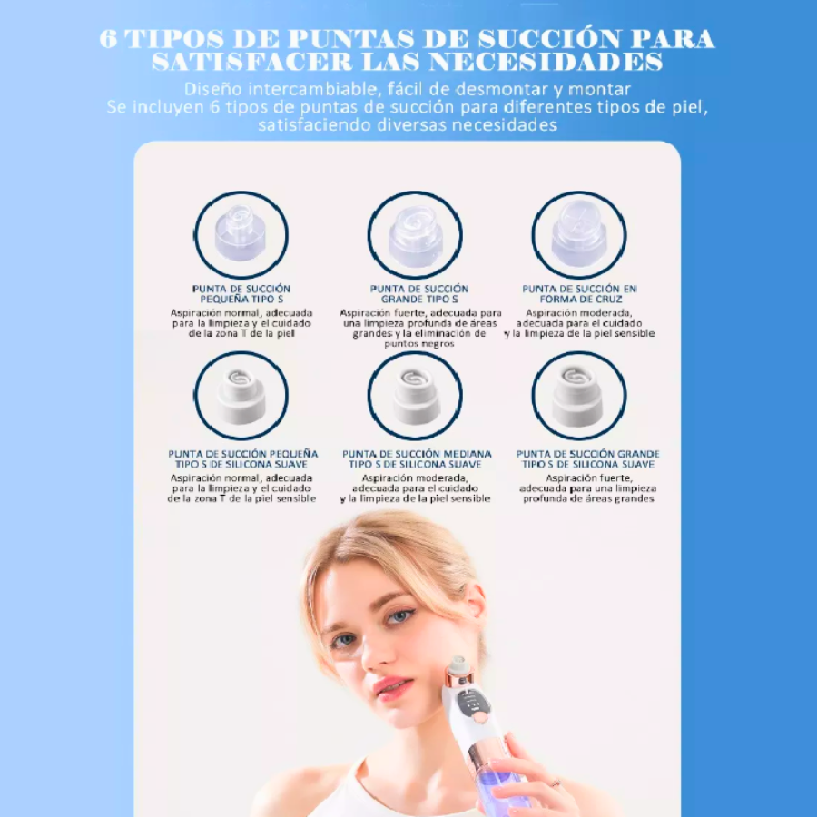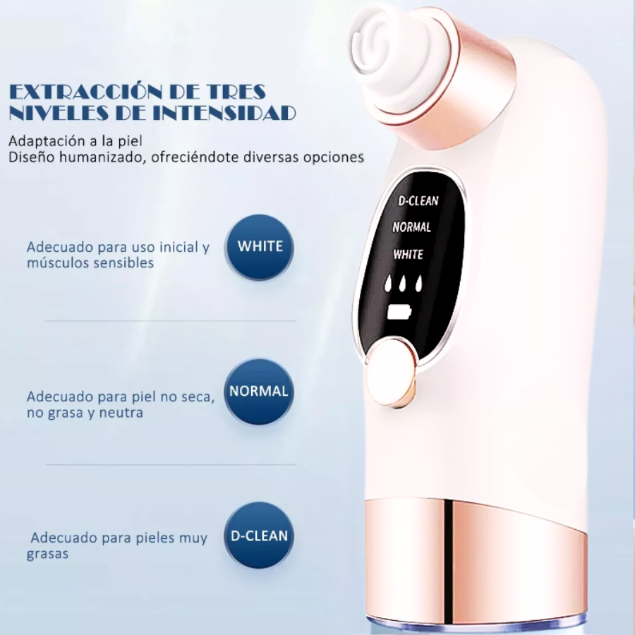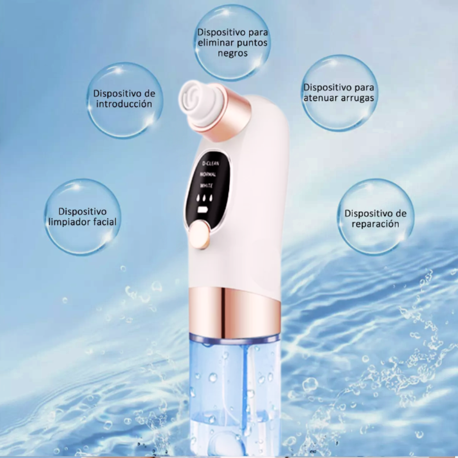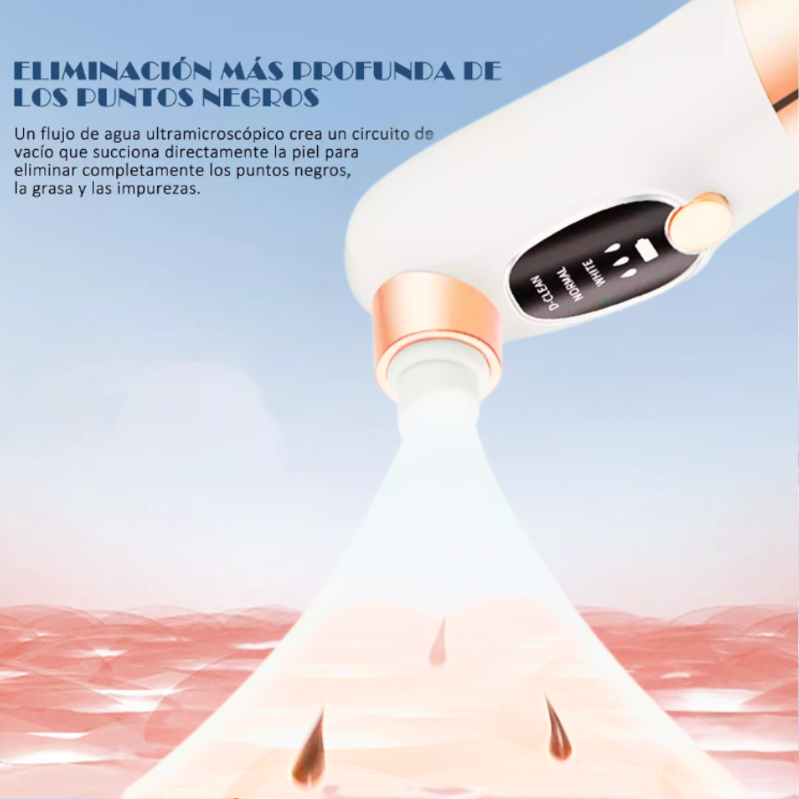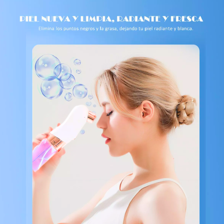 Coloca la boquilla de la máquina sobre el área que deseas tratar (normalmente la zona T: nariz, mentón, frente). Muévela suavemente en movimientos ascendentes y circulares. No la mantengas demasiado tiempo en un solo lugar para evitar irritaciones.